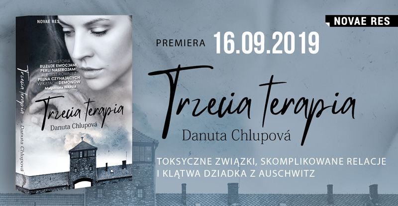 Trzecia terapia to opowieść o winach własnych i cudzych, o rodzinnej przeszłości, uzależnieniu od innych i o niełatwej miłości, która może przyjść w każdym wieku. Do lektury zaprasza Wydawnictwo Novae Res. Koniecznie weźcie też udział w konkursie, który poświęcony jest nowej książce Danuty Chlupovej.
