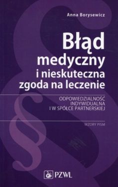 Publikacja ,,Błąd medyczny i nieskuteczna zgoda na leczenie. Odpowiedzialność indywidualna i w spółce partnerskiej. Wzory pism" zawiera liczne przykłady sytuacji, w jakich może znaleźć się lekarz czy podmiot leczniczy. Jest to przewodnik po wycinku prawa, dzięki któremu każdy świadczący usługi lecznicze będzie wiedział, jak się ubezpieczyć, jakie ma prawa i obowiązki.