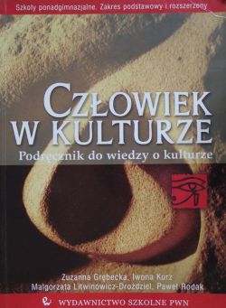 CZŁOWIEK W KULTURZE to nowoczesny podręcznik do wiedzy o kulturze, przeznaczony dla uczniów szkół ponadgimnazjalnych - liceów ogólnokształcących i profilowanych oraz techników. Podręcznik wyróżnia antropologiczne, a nie tylko artystyczne rozumienie kultury, a także jej ujęcie medialne. Na początku znajduje się wyjaśnienie antropologicznej definicji kultury oraz omówienie zagadnień, z którymi uczeń spotyka się na co dzień: duchowości, materialności, przestrzeni i czasu. Następnie prezentowane są różne rodzaje grup społecznych. Najwięcej miejsca zajmuje przedstawienie podstawowych mediów kultury, m.in. słowa, dźwięku, obrazu. Ponadto poruszane są kwestie postaw i sposobów działania w kulturze współczesnej (np. tożsamości, wielokulturowości, globalizacji).
