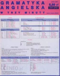 W publikacji w formie tabelarycznej przedstawiono gramatykę angielską, w tym m.in. czasy, mowę zależną, stronę bierną oraz listę niektórych czasowników nieregularnych.