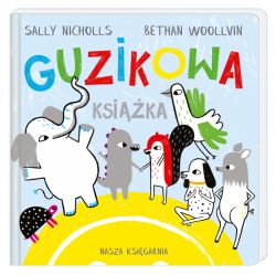 W „Guzikowej książce” maluchy mają za zadanie klikać w różne guziki – czerwone, żółte, okrągłe i kwadratowe, duże i całkiem malutkie – a takie naciśnięcie powoduje zmianę w rzeczywistości postaci z bajki. Jeden guzik sprawia, że wszyscy się przytulają, drugi, że tańczą, trzeci, że się łaskoczą – oczywiście najlepsza zabawa jest wtedy, kiedy i rodzic w odpowiednich momentach łaskocze, czy zaczyna tańczyć z małym czytelnikiem. Guziki znajdują się na różnych wysokościach i płaszczyznach, co sprawia, że dziecko ćwiczy spostrzegawczość, szukając ich na nowej stronie.