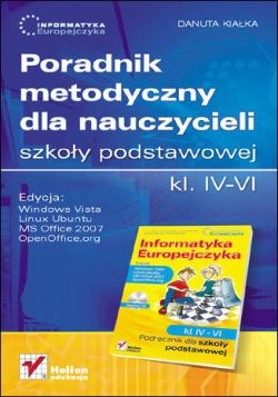 "Informatyka Europejczyka. Poradnik metodyczny dla nauczycieli szkoły podstawowej, kl. IV - VI. Edycja: Windows Vista, Linux Ubuntu, MS Office 2007, OpenOffice.org" jest książką pomocniczą dla nauczyciela, który prowadzi zajęcia, korzystając z podręcznika "Informatyka Europejczyka. Podręcznik dla szkoły podstawowej. Edycja: Windows Vista, Linux Ubuntu, MS Office 2007, OpenOffice.org". Zawiera on propozycję rozkładu materiału, konspekty lekcji oraz opis przykładowych zestawów ćwiczeń do wykorzystania na zajęciach z informatyki lub spotkaniach kółka informatycznego. Można tu także znaleźć omówienie testów opracowanych z myślą o lekcjach powtórkowych i sprawdzianach oraz test podsumowujący cykl nauczania.
