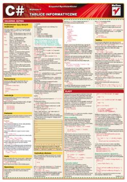 Tablice informatyczne. C# to podręczne zestawienie niezbędnych programiście informacji dotyczących języka C#. Pracując pod presją czasu, nie zawsze można znaleźć czas na wertowanie grubych książek. Niezależnie od tego, czy tworzysz aplikacje dla systemu Windows, aplikacje WWW, czy usługi sieciowe, docenisz tablice informatyczne.