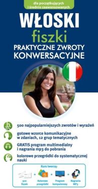 Włoski fiszki Praktyczne zwroty konwersacyjne to wyjątkowy zestaw 500 ponumerowanych fiszek oraz kolorowych przegródek. Uzupełnieniem zestawu jest program multimedialny oraz nagrania mp3 do pobrania. Nauka z kursem pozwala szybko i skutecznie opanować najczęściej używane w języku włoskim zwroty i poznać ich użycie z zdaniach. Aby ułatwić zapamiętanie materiału metodą skojarzeń, kurs podzielono na 16 grup tematycznych.