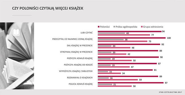 Szczegółowej analizie poddano w tym roku nauczycieli-polonistów ze szkół ponadgimnazjalnych. Badacze uznali, że ta grupa społeczna ma szczególnie duży wpływ na czytelnictwo Polaków, postanowili więc przyjrzeć się ich nawykom i preferencjom związanym z książką. Badanie wykazało, że poloniści czytają zdecydowanie więcej i chętniej niż ogół badanych (co nie zaskakuje), ale także zdecydowanie wyróżniają się in plus nawet w porównaniu z podobną sobie grupą demograficzną (kobiety, aktywne zawodowo, wykształcone, w wieku 25–60 lat).