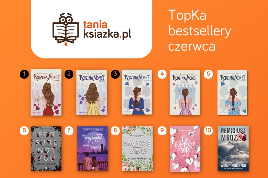 Jakie propozycje książkowe były najchętniej czytane w czerwcu? Przygotowaliśmy dziś dla was listę bestsellerów księgarni TaniaKsiazka.pl oraz Empiku, księgarń kameralnych, a także platformy Audioteka!