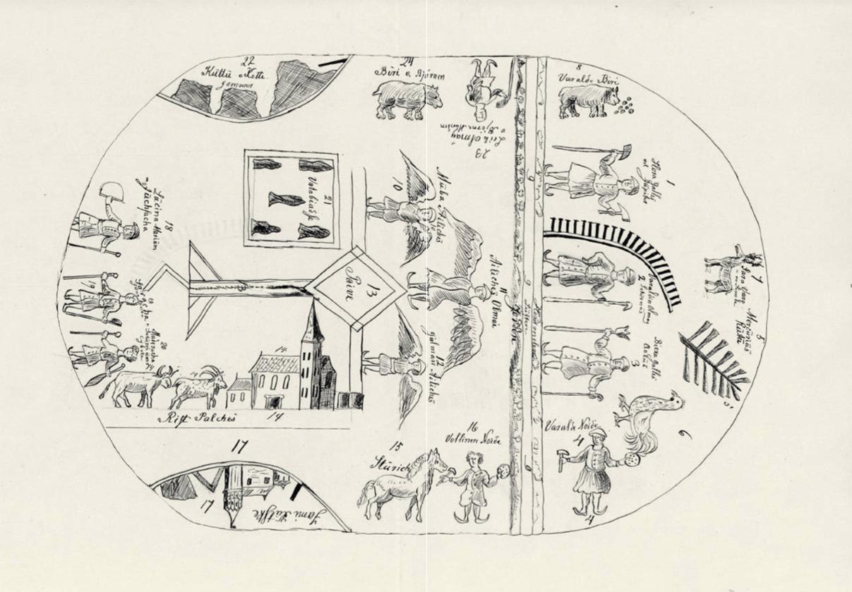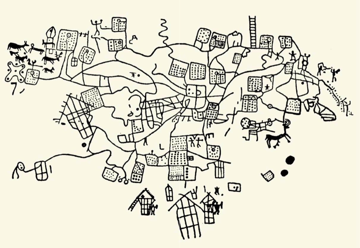 Nadanie światu nazw, określenie słowem konkretnego drzewa, danego jeziora czy góry, sprawia, że ten świat się powiększa, a jednocześnie staje się mniejszy i bardziej zrozumiały. Pozwala to również łatwiej przekazywać informacje. Można więc sobie wyobrazić, że rozwój świadomości przestrzeni i rozwój języka wzajemnie się wspomagały. Człowiek pierwotny być może chciał opisać mapę, którą miał w głowie, wykształcił zatem zasób słów na określanie długich i krótkich odległości, kierunków, znaków orientacyjnych i czasu potrzebnego, by dotrzeć w jakieś miejsce. Może potem tworzył pierwsze mapy z patyków i kamyczków na piasku, śniegu lub ziemi albo pędzlem lub palcami malował je na ścianie jaskini.