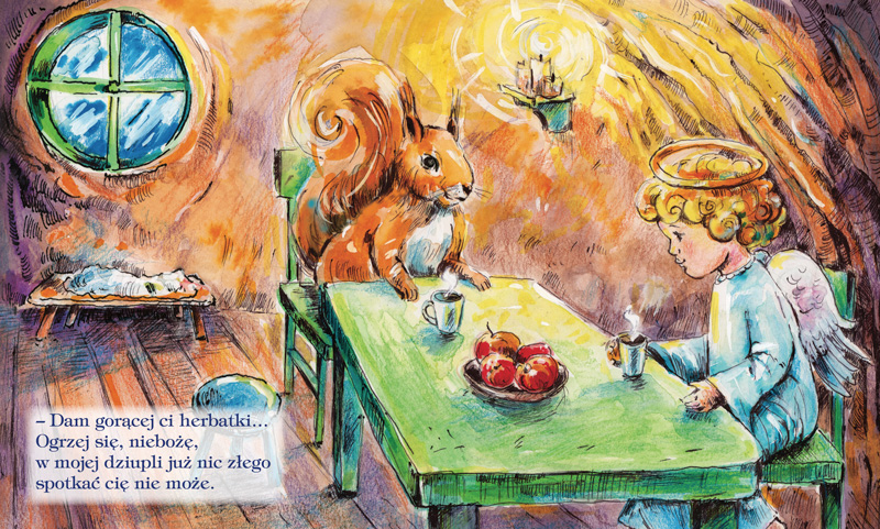 „Zimowa przygoda Aniołka” to wzruszająca, budująca opowieść o tym, jak dobrze jest pomagać! Mały aniołek zagubiony w zimowym lesie spotyka wiewióreczkę o dobrym sercu, która nie jest obojętna na jego los. Malarskie ilustracje przyciągają i poruszają wyobraźnię dziecka.