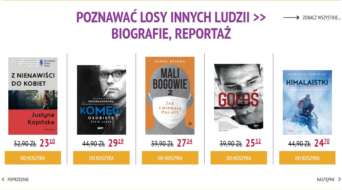 Twórcy taniaksiazka zdecydowali się przecenić kilka propozycji “na początek”: