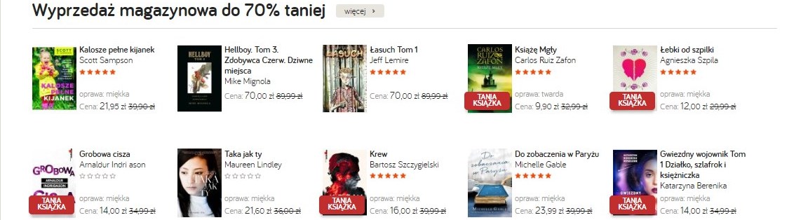 Na taniaksiazka.pl znajdziemy nieźle “ukrytą” Wyprzedaż Magazynową ze świetnymi okazjami: