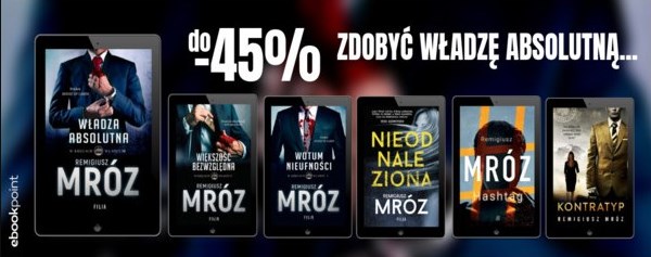 E-książki Remigiusza Mroza zostały przecenione na ebookpoint, gdzie zakupimy je tanie, a wśród nich znajdziemy np.: