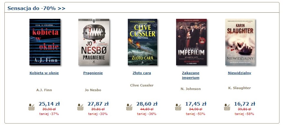 Taniaksiazka.pl zdecydowała się przecenić książki w ramach pakietu oferującego dodatkowe -10% za kolejną książkę. W ten sposób możemy zaoszczędzić do 55%!