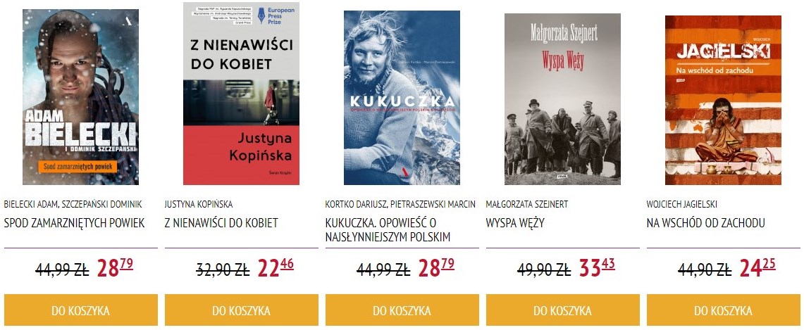 Literatura faktu i podróżników została przeceniona w matrasie, w tym na takie pozycje jak: