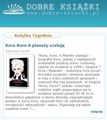 Nowy tydzień to także nowa proponowana pozycja, którą tym razem została Kora Kora A planety szaleją - Kamila Sipowicza. Przy okazji zwróciliśmy tym razem uwagę na takie tytuły jak: