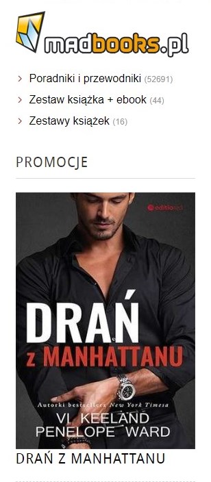 Na stronie głównej madbooks.pl znajdziemy sporo promocji, z których szczególnie wyróżniono Drania z Manhattanu Keelanda Vi oraz Warda Penelope. Co jeszcze jest warte uwagi?