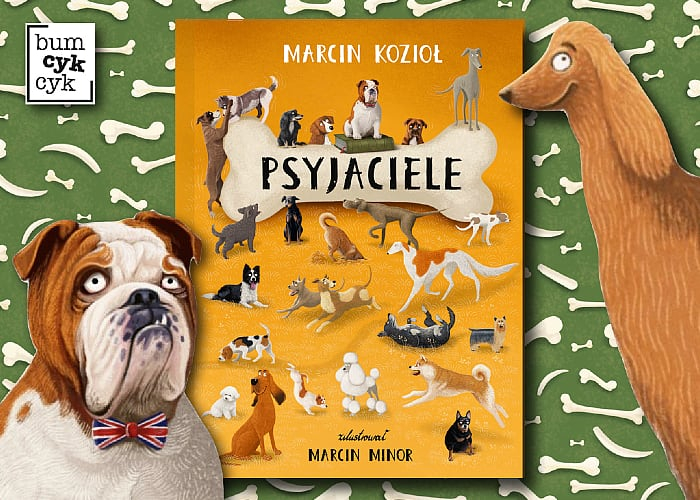 W napisanej z rozmachem i nieodłącznym poczuciem humoru książce Psyjaciele Marcin Kozioł przedstawił niezwykłych ludzi i ich psyjaciół, ale też... koty, kanarki, papugi, gęsi, myszy, barany, małpki, które z nimi mieszkały, a nawet pewną bardzo ważną dla kultury świata... muchę. Mnóstwo ciekawych szczegółów dostrzec można też na znakomitych, wysmakowanych ilustracjach Marcina Minora.