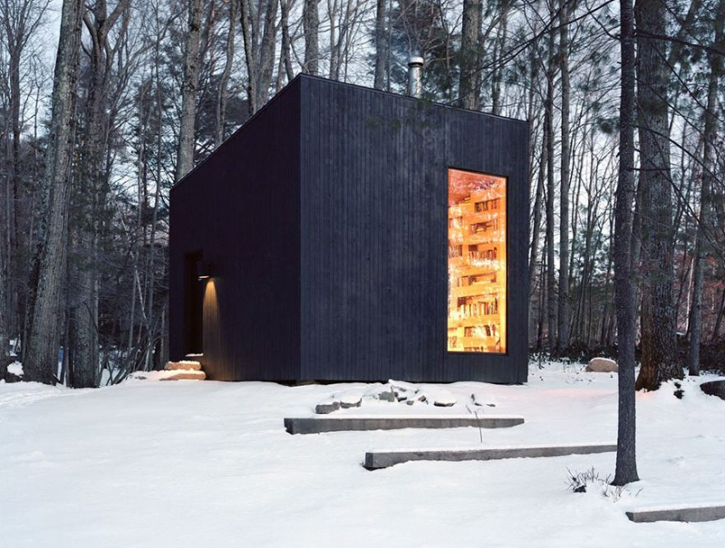 Architekci podjęli się tego zadania i stworzyli prawdziwy raj dla moli książkowych. Aby stworzyć mały domek, trzeba było ściąć najpierw kilka drzew – drewno posłużyło do stworzenia mebli, w tym regałów i półek, które stanowią element wyposażenia domku. Chociaż z zewnątrz może wzbudzać tajemnicze czy mroczne wrażenie, to samo wnętrze domku jest utrzymane w bardzo jasnych i ciepłych kolorach oraz z użyciem mebli pochodzących z naturalnych materiałów.