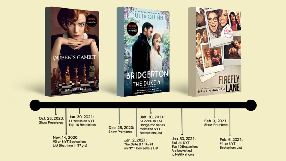 Jak zauważa w swoim komunikacie prasowym Netflix, ponad połowa książek, które pojawiła się w lutym na liście TOP 10 bestsellerów New York Timesa to książki powiązane z seriami Netflixa.