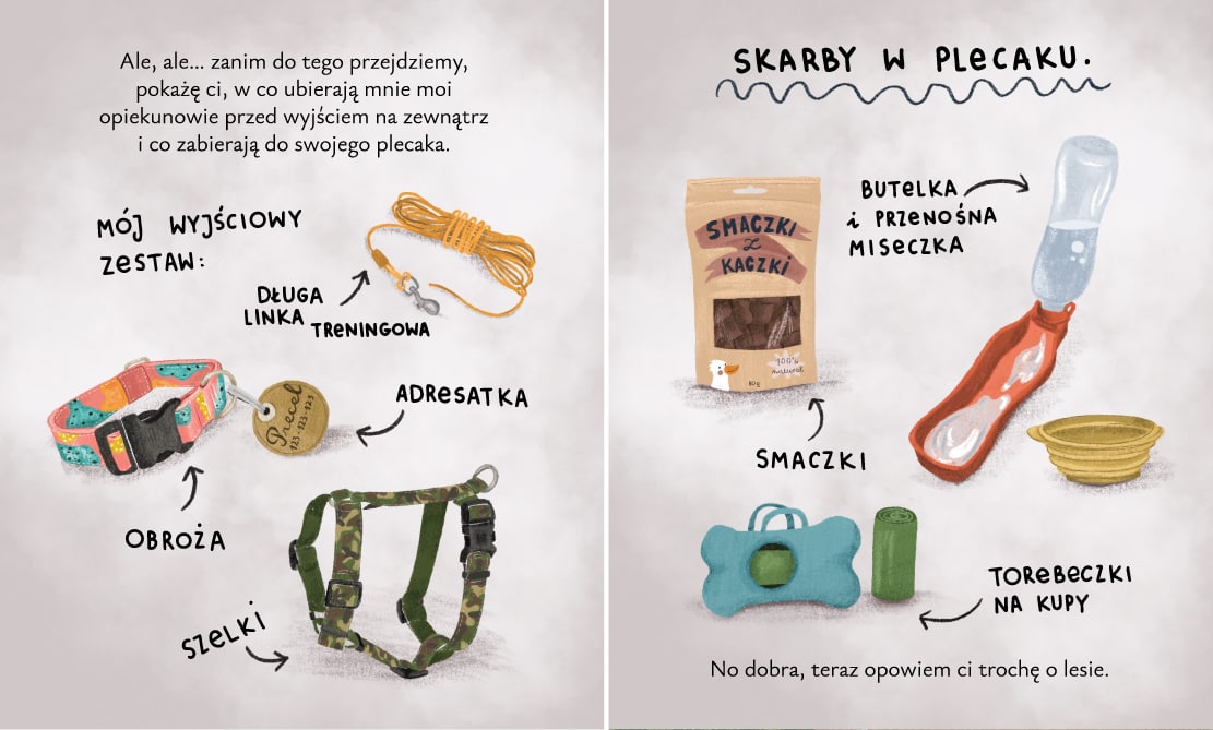 Precel idzie na spacer to już trzecia opowieść o dzielnym kundelku Preclu! Po poznaniu nowego domu nadszedł czas na spacery pełne przygód. Precel wspólnie z opiekunami wybiera się do lasu, a tam spotyka leśne zwierzęta - jeża Jędrusia i sikorkę Stefcię. Czy Precel i mieszkańcy lasu się polubią? Co może spotkać pieska na leśnej ścieżce i jak przygotować go na taką wyprawę?