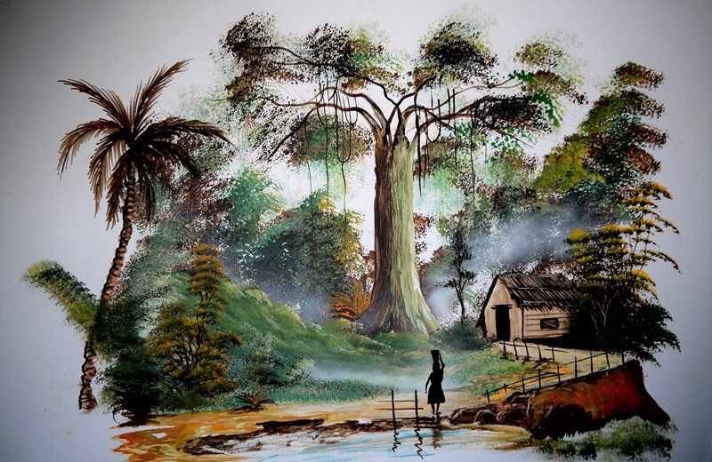 Aby poczuć się choć trochę lepiej, dałam jej także na pamiątkę jedną z moich kopii ćwiczeniowych, czyli obrazek wodospadu. Wiele razy widziałam, jak Arti dawał swoje obrazy ludziom, którym chciał sprawić przyjemność czy podziękować za uprzejmość. Nic to jednak nie dało. Twarzy kobiety nie rozświetlił nawet cień uśmiechu, a mnie zrobiło się jeszcze bardziej wstyd. Bo na co żonie wodza tak żałosny podarek?