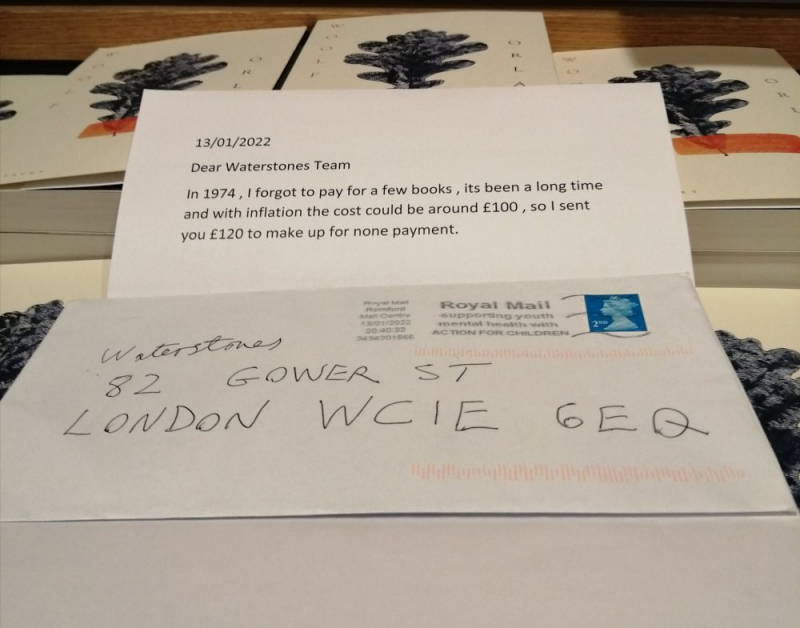 O całym zajściu w social mediach napisała księgarnia Waterstones przy Gower Street w Londynie, do której trafiła nietypowa przesyłka. Na swoim profilu na Twitterze księgarnia umieściła zdjęcie przedstawiające list datowany na 13 stycznia 2022 roku, w którym nadawca tłumaczy, że w 1974 roku zapomniał zapłacić za swoje książki.