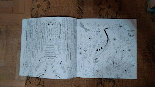 "Radość kwiatów" to zbiór obrazków z motywami kwiatów jak mówi sam tytuł. Obrazki są świetne i zwierzęta i kwiaty i dodatkowo cytaty. Jest w czym wybierać i choć ja nie lubię motywów kwiatów, w tym przypadku przepadłam. Te wszystkie sowy, ważki, motyle to wszystko daje nam tyle możliwości, tak pozwala się wykazać kreatywności i wyobraźni, że można spędzać z nią wiele cudownych godzin. Jedyne czego żałuję to tego, że obrazki są po obydwóch stronach kartki, a nie pojedynczo :/ Ale to mój taki mały fetysz po "Inwazji bazgrołów" :D