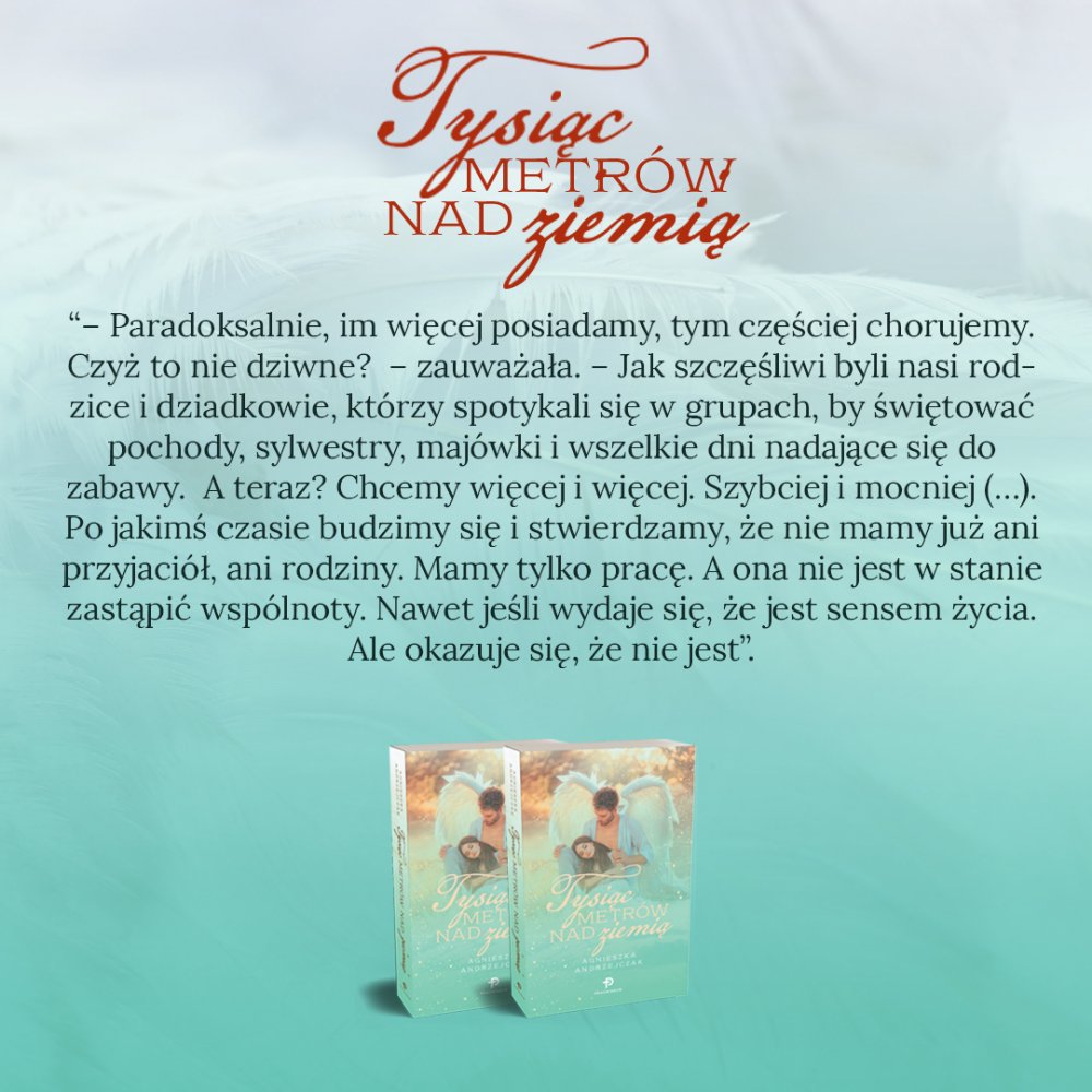 – Jeśli pokochamy i zaakceptujemy siebie, zaakceptujemy także prawo do posiadania przeszłości, nawet tej trudnej. Dlatego moją książkę lubię nazywać „powieścią o potędze Miłości”. Miłości pisanej przez duże „M”, czyli ponadludzkiej i ponadczasowej – mówi Agnieszka Andrzejczak, autorka powieści Tysiąc metrów nad ziemią.