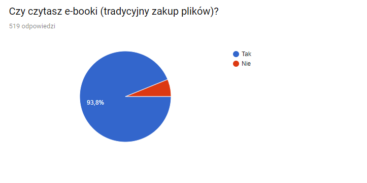 Zakończeniem ankiety było pytanie o rezygnację z książek papierowych na rzecz e-booków. 64,5% czytelników e-booków zadeklarowało, że całkowicie nie zrezygnowali z czytania papierowych książek na rzecz książek elektronicznych. Jednakże aż 35,5% ankietowanych potwierdziło, że czytają książki jedynie elektronicznie. To naprawdę duży odsetek osób!