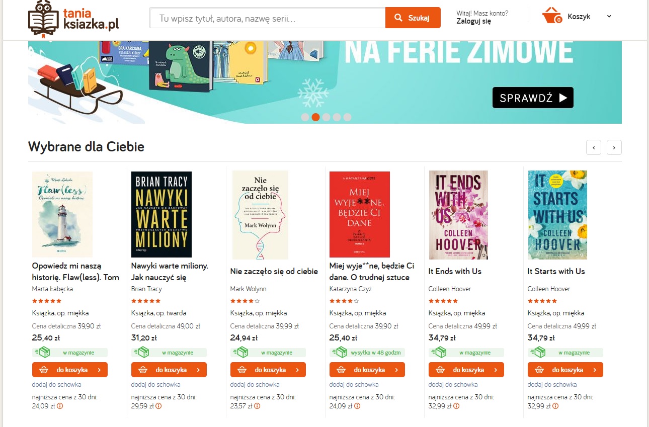 Księgarnia TaniaKsiazka.pl najniższą cenę sprzed okresu promocji podaje już na stronie głównej.