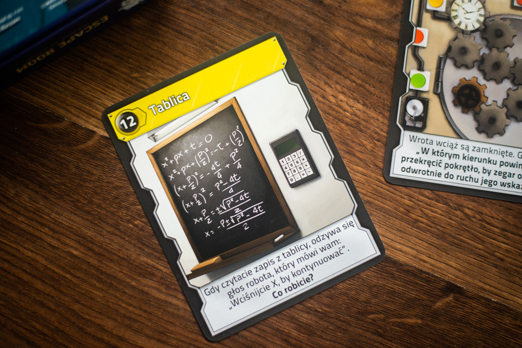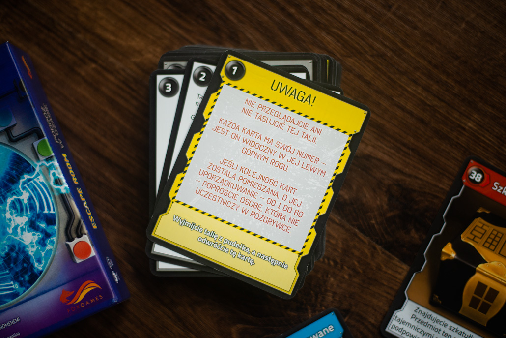 Zagadki przedstawione na kolejnych kartach są bardzo różnorodne – praktycznie nie powtarza się w nich ten sam schemat odpowiedzi, chociaż doświadczenie wyniesione z tradycyjnych escape roomów czy odgadniętych już kart na pewno przyda się w dalszej rozgrywce. Nie jest też tak, że poziom trudności rośnie w miarę zbliżania się do końca gry. Napięcie rośnie przede wszystkim za sprawą presji czasu. Zakończenie rozgrywki jest w pełni satysfakcjonujące. Co ważne: w przeciwieństwie do tradycyjnych escape roomów nie trzeba kończyć rozgrywki, gdy minie 60 minut. Warto więc poświęcić nieco więcej czasu na próbę rozwiązania kolejnych zagadek, bowiem natychmiastowe odwrócenie karty w poszukiwaniu odpowiedzi zabija całą radość z rozgrywki. Natomiast, podobnie jak w pokojach zagadek, można skorzystać z podpowiedzi, które nie niosą gotowych rozwiązań. W przypadku gry bardzo ważne jest też uczciwe przestrzeganie zasad rozgrywki: gdy udzieli się niepoprawnej odpowiedzi, należy – zgodnie z instrukcją – zapisać na specjalnej karcie odpowiednią liczbę krzyżyków, oznaczających popełnione błędy i wpływających na ostateczny wynik.
