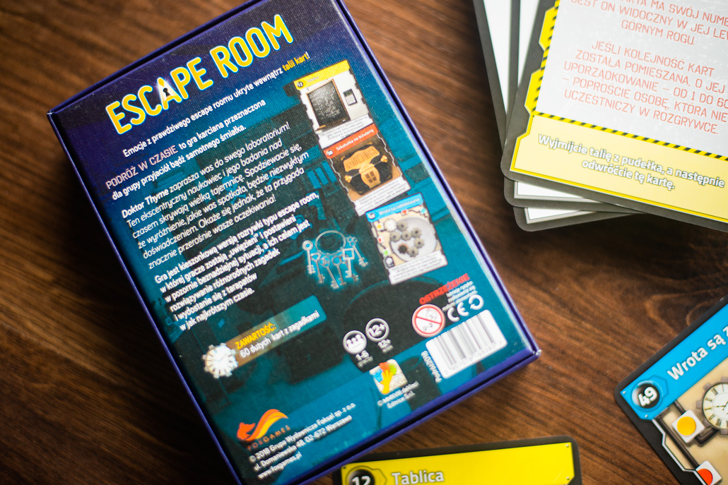 Choć zestaw wydaje się niepozorny – to przecież „tylko” talia 60 kart – to z powodzeniem zastąpić może wizytę w pokoju zagadek. Wciągająca narracja sprawia, że momentami gracze czują się tak, jakby rzeczywiście przenieśli się do laboratorium nieco ekscentrycznego doktora Thyme’a. Oczywiście, karty nie zastąpią w pełni rekwizytów istniejących w escape roomach, które można łatwo obrócić, których można dotknąć, którymi gracze potrząsają, by usłyszeć, co jest w środku, ale fabuła gry i tak wypada bardzo przekonująco.