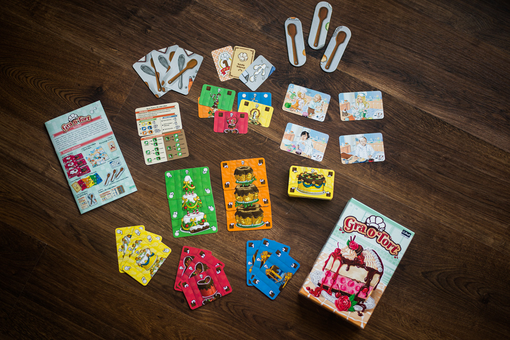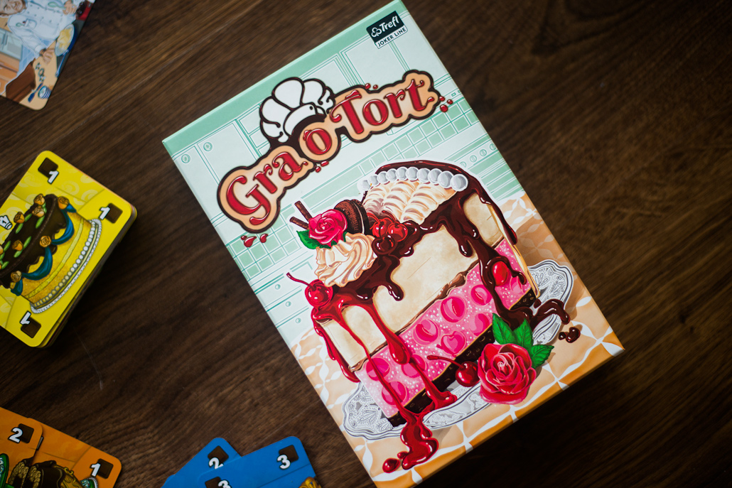 Gra o tort jest bardzo prostą, kolorową karcianką, której rozgrywka zajmuje ok. 20 minut. Dopuszcza dwa warianty: łatwy do nauczenia i niewiele trudniejszy dla urozmaicenia. Łączy elementy strategii z losowością, bo choć można coś zaplanować, to tak naprawdę wiele zależy od wymieszania kart i spostrzegawczości przeciwników, którzy pełnoprawnie mogą na przykład zabrać karty z cudzej ręki do swojej cukierni. Losowość też zmienia dynamikę poszczególnych rozgrywek. Bywają takie, że każdy robi tort za tortem, aż na końcu pojawiają się problemu z warstwami. A zdarza się, że rozpoczynamy od razu produkcję trzech tortów, ale nim uda się trafić na odpowiednią kolejną warstwę, minie kilka tur. To sprawia, że nie wszystkie rozgrywki są takie same.
