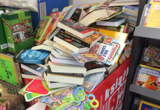 Podobnie jest w Biedronce, gdzie oprócz specjalnych półeczek, książki trafiają do koszy ze względu na ograniczoną powierzchnię: