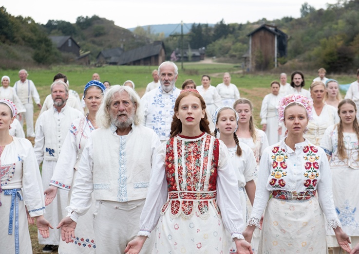 Po wyjątkowo szarej, mroźnej zimie Dani i Christian wraz z grupą jego przyjaciół wybierają się na szwedzką prowincję, by wziąć udział w pogańskim święcie. To, co nastąpić ma później, zdradzają malowidła i wyszywane rękodzieło, które widzowi zaprezentowane zostają jeszcze przed zawiązaniem akcji. Dość powiedzieć, że będzie bardzo intensywnie, jeszcze bardziej – brutalnie, aż do granicy absurdu. Nie, „Midsommar” nie jest filmem, który polecić można by było widzom wrażliwym, nie znoszącym widoku krwi. Ale też nie wiem, czy jest nań gotowy niedzielny miłośnik horroru. Bo nie pokazywanie ludzkich bebechów dla samej brutalności obrał sobie Ari Aster za cel. „Midsommar” nie jest w żadnej mierze typowym filmowym slasherem, choć wykorzystuje środki charakterystyczne dla tego gatunku. Film trwa prawie dwie i pół godziny i komuś, kto poszukuje szybkiej akcji, jego oglądanie może wydać się doświadczeniem śmiertelnie nudnym. W pewnym sensie „Midsommar" może odrzucić zarówno fanów kina festiwalowego, jak i tych, którzy gustują w grozie.