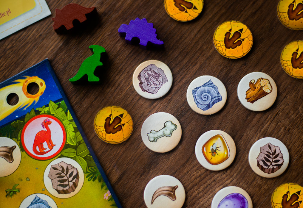 Zestaw wykonany jest starannie, jego atutem są drewniane elementy – figurki dinozaurów, kostka oraz meteoryt. Pozostałe elementy wykonane są z naprawdę grubego i solidnego kartonu, nie ma więc obaw o szybkie zniszczenie gry – nawet w przypadku udziału w zabawie najmłodszych miłośników planszówek. Elementy zaprojektowane są pomysłowo, całość jest spójna, kolorystyka zaś stonowana.