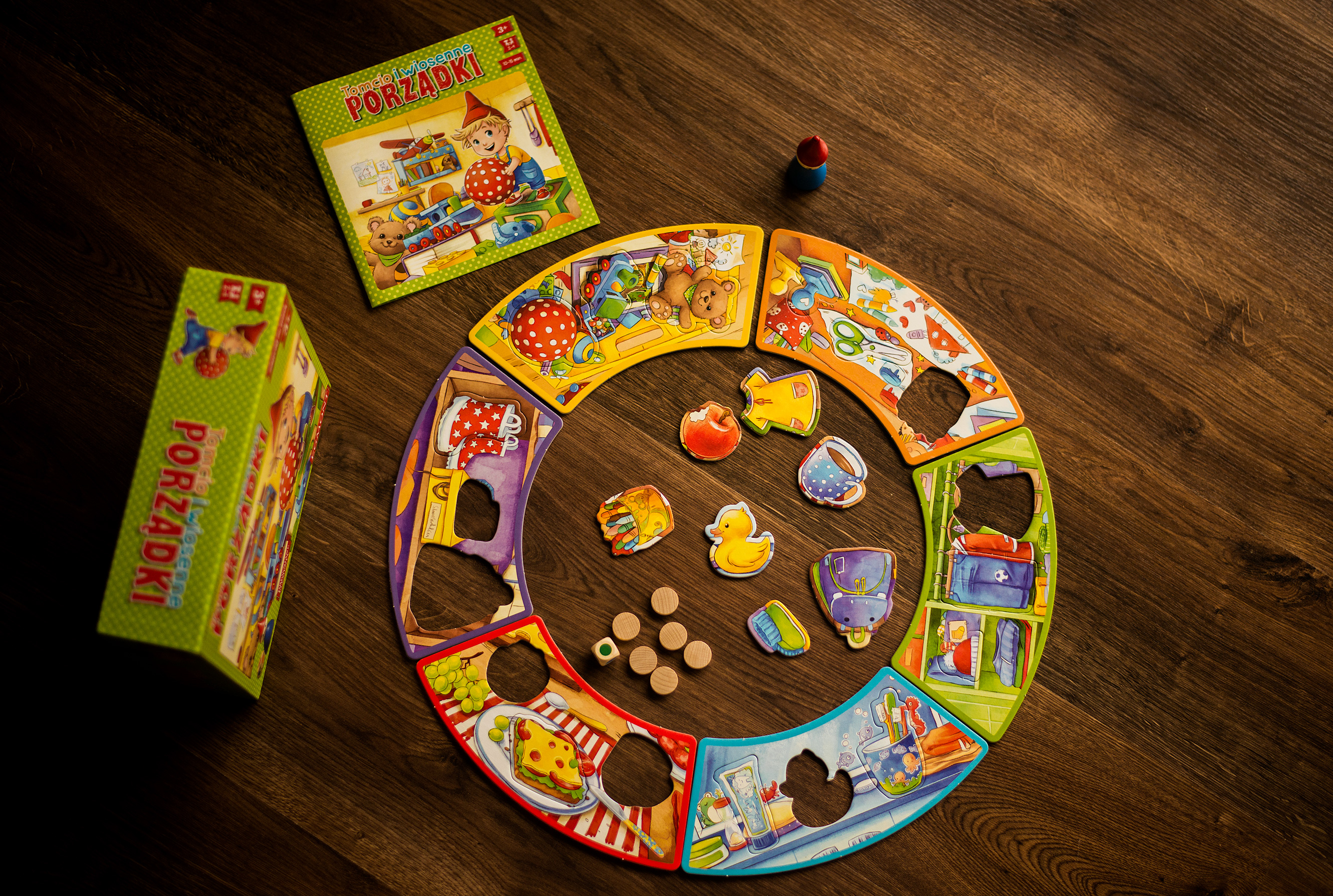 „Tomcio i wiosenne porządki" to gra dedykowana już trzylatkom. I rzeczywiście, nawet najmłodsi gracze przy drobnej pomocy rodziców powinni poradzić sobie ze zrozumieniem jasnych zasad. Dla nieco starszych przygotowano trudniejszy wariant gry - w nim przedmioty pośrodku planszy ustawia się obrazkami do dołu. I tu jednak najwięcej radości z zabawy czerpać będą przede wszystkim młodsze dzieciaki. Gra kształtuje spostrzegawczość i cierpliwość, pomaga też w zrozumieniu, że gry planszowe rządzą się określonymi zasadami i nie zawsze się wygrywa - a to może stać się wstępem do bardziej skomplikowanych zabaw. Z kolei dopasowywanie przedmiotów do pustych pól na planszy stanowi dobre ćwiczenie przed przystąpieniem do układania puzzli.