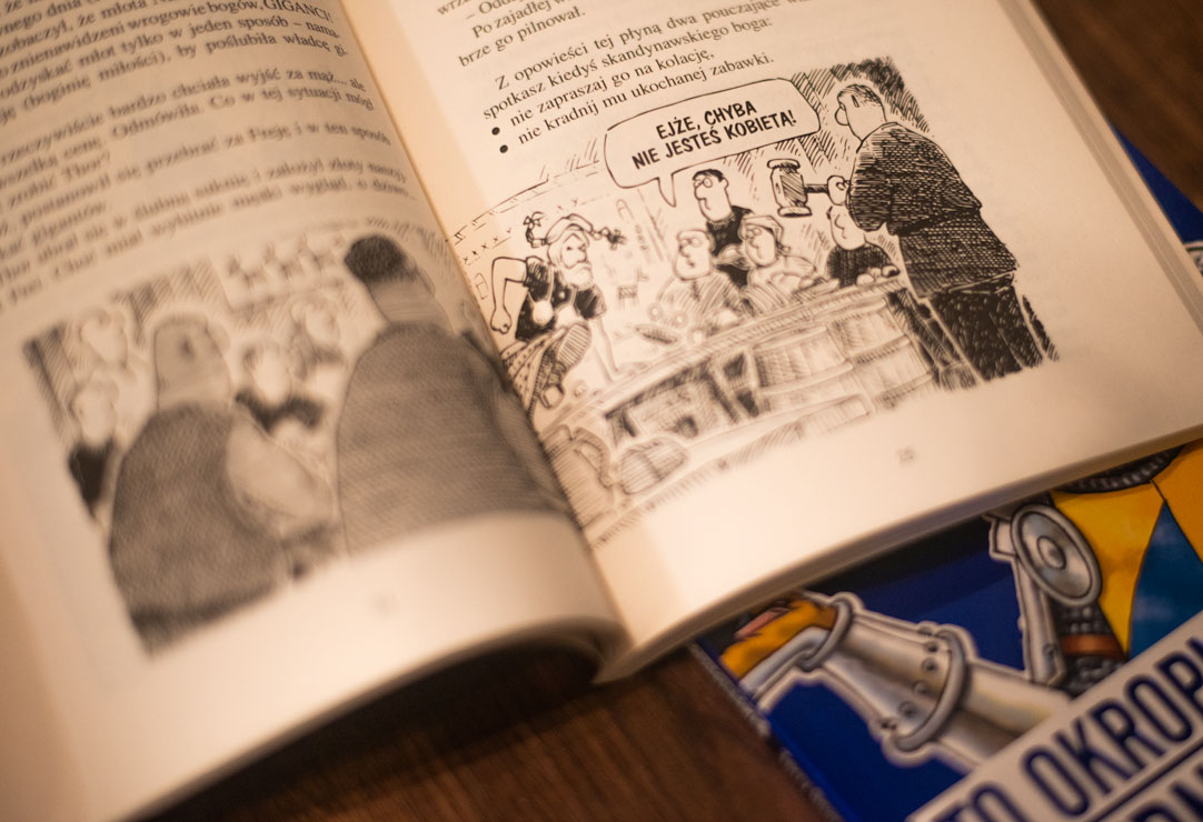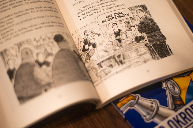 Z perspektywy czasu pewne żarciki przestają bawić i humor nie przypadnie do gustu dorosłemu czytelnikowi (choć nie jest to regułą). Tym, co jednak może budzić największe zastrzeżenia, jest ciągłe podważanie autorytetu nauczyciela i systemu edukacji. Rozumiem ten chwyt jako próbę „zakumplowania się" z młodym odbiorcą – nic bardziej nie łączy, niż narzekanie na szkołę. Częstotliwość stosowania tego typu zabiegów jednak w książce wydała mi się za duża – jakby autor za wszelką cenę próbował budować swoją pozycję guru kosztem mniejszego szacunku dla nauczycieli czy nawet rodziców. Chyba że ci ostatni są fundatorami kolejnych egzemplarzy i podbierają książki dziecku, by samemu poszerzyć znajomość historii. W oczach młodego czytelnika zyskają wówczas z pewnością uznanie.