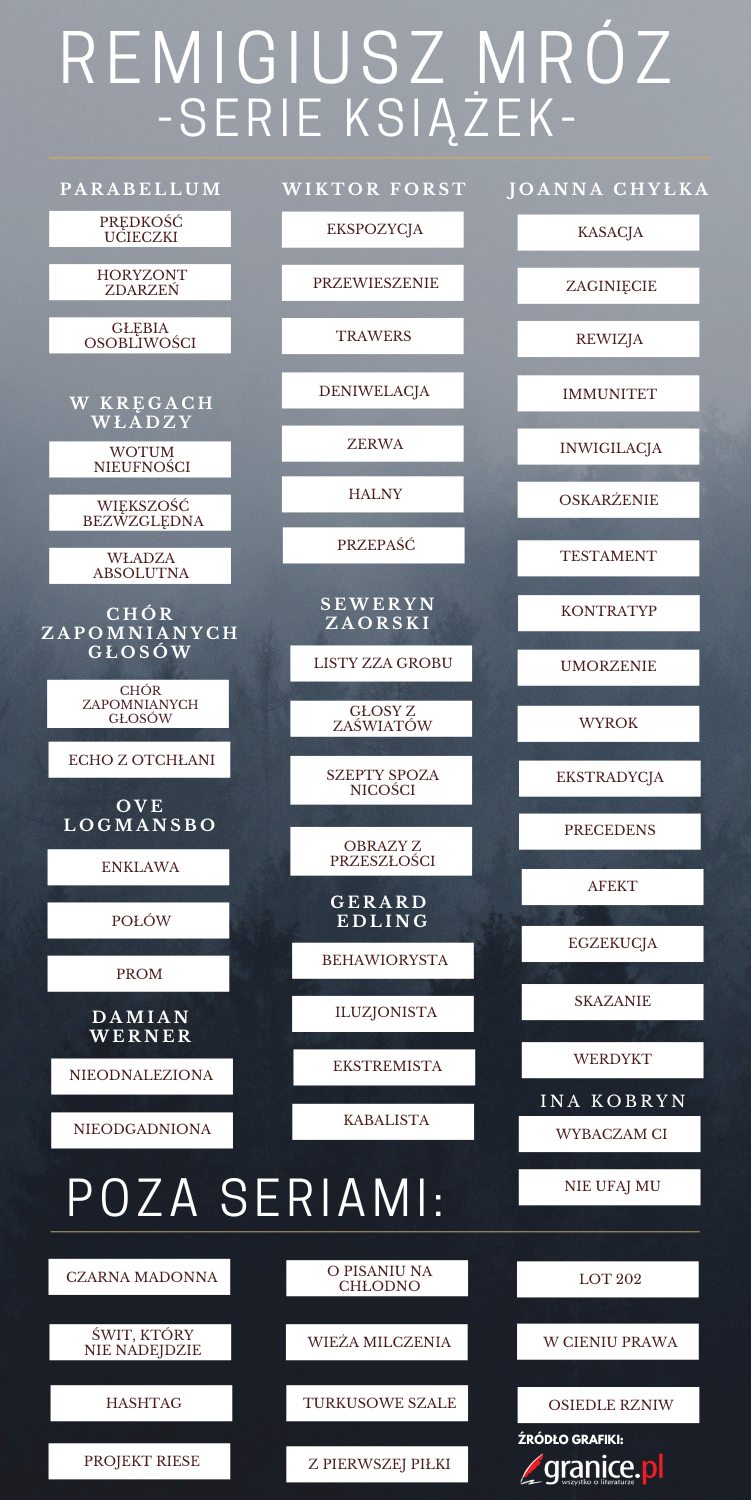 Oto nasz graficzny przewodnik po wszystkich książkach Remigiusza Mroza:
