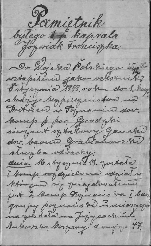 Zakładnicy wolności to także powieść o odzyskiwaniu przez Polskę niepodległości. Zamieściła Pani w powieści oryginalne zapiski kaprala Franciszka Jóźwiaka. Proszę nam opowiedzieć, w jaki sposób znalazły się w Pani rękach?