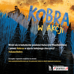 Każde dziecko, którego dziadkowie mieszkają na wsi, zwykle właśnie u nich spędza wakacyjny czas. Podobnie jest z Tomkiem, głównym bohaterem książki Katarzyny Wasilkowskiej, Kobra. Różnica polega jednak na tym, że chłopiec nigdy wcześniej nie spotkał swojej babci, nikt też w domu nigdy o niej nie wspominał. To jednak dopiero początek przygód, jakie staną się udziałem chłopca. A wątki detektywistyczne, wciągająca fabuła i dynamiczna akcja sprawią, że Kobrę czytać się będzie jednym tchem.