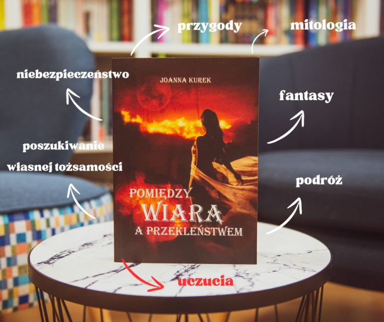 Pomiędzy wiarą a przekleństwem opowiada o wewnętrznej walce, o dwóch światach, duchowej podróży oraz o wielkiej odpowiedzialności, która musi być przytłaczająca. Joannie Kurek udało się powołać do życia postaci, które są niejednoznaczne. Nie możemy tak do końca mieć pewności, kto ma jakie intencje. Niektórzy mocno zaskakują! Myślę, że książka pokazuje jednak, że warto wierzyć w siebie. I walczyć o to, co się kocha, co jest dla nas ważne. A mając wokół siebie przyjazne dusze, można dokonać cudu. I utrzeć komuś nosa!