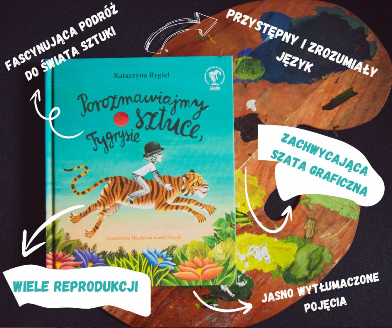 W jaki sposób opowiadać dzieciom o sztuce, by wzbudzić ich zainteresowanie? Wyzwanie to podjęła Katarzyna Rygiel, publikując we współpracy z fenomenalną ilustratorką Magdaleną Kozieł-Nowak znakomitą i ponadczasową opowieść Porozmawiajmy o sztuce, Tygrysie.